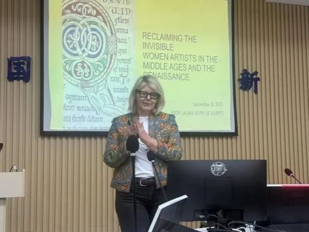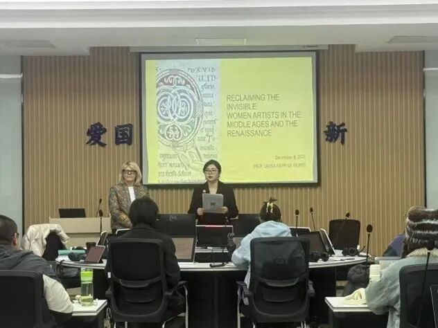 讲座以“Reclaiming the Invisible: Women Artists in the Middle Ages and the Renaissance”为主题,Laura副教授从中世纪至文艺复兴时期艺术史书写中的性别失衡现象入手,系统梳理了该时期女性艺术家创作的历史背景与研究现状。她结合丰富的图像史料与文献研究成果,生动阐述了四位具有代表性的女性艺术家的创作生涯与艺术贡献,并强调了艺术史重构中多元视角的重要性。
