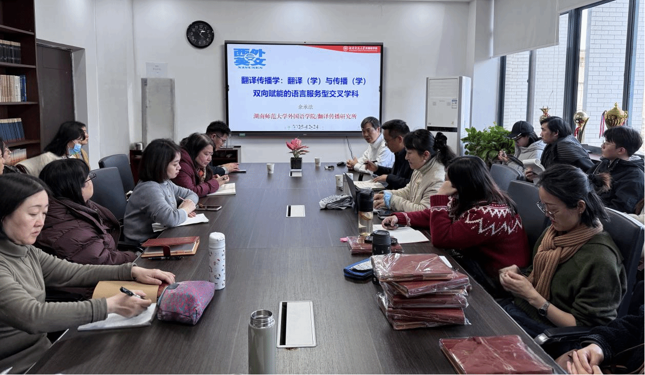 12月24日,湖南师范大学外国语学院余承法教授应邀到访我院,以“翻译传播学:翻译(学)与传播(学)双向赋能的语言服务型交叉学科”为题,为学院师生带来一场兼具理论深度与实践价值的学术讲座。本次讲座由院长冯正斌主持。