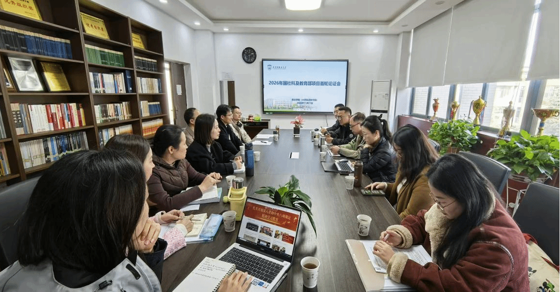 为精准把握国家社会科学基金、教育部人文社会科学研究项目申报要求,切实提升项目申报质量与立项数量,助力学院科研高质量发展,11月 11 日,英文学院召开 2026 年度高层次科研项目首轮论证会。院长冯正斌,副院长裴等华、宋义国参加会议,特邀杨毅隆教授、马俊杰副教授担任论证专家代表,学院拟申报项目教师参会。