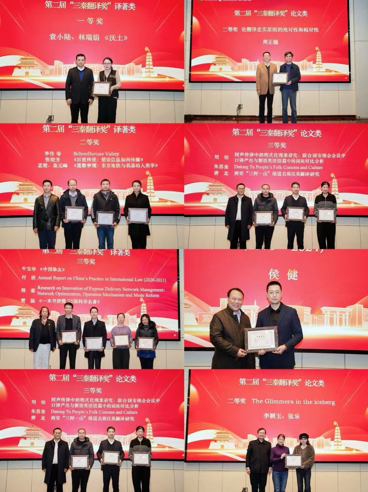 会议第二阶段为第二届“三秦翻译奖”颁奖典礼,该奖项是陕西省翻译领域的最高荣誉,旨在表彰在翻译实践、理论研究、教育及服务等方面取得卓越成就的个人或集体。本届共评选出14项奖项,涵盖译著、论文、专著及译文等多个类别。
