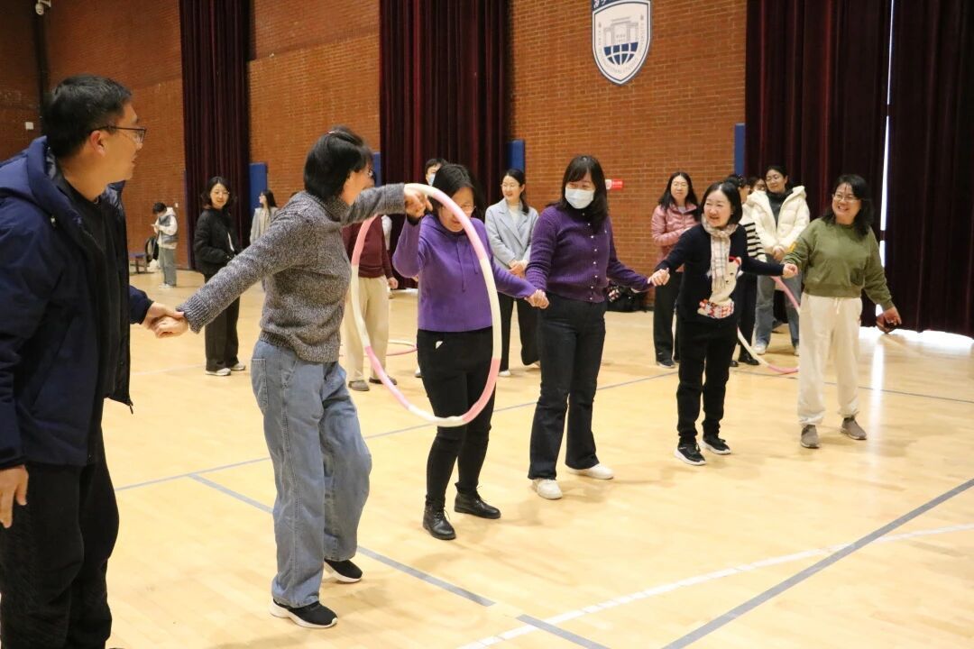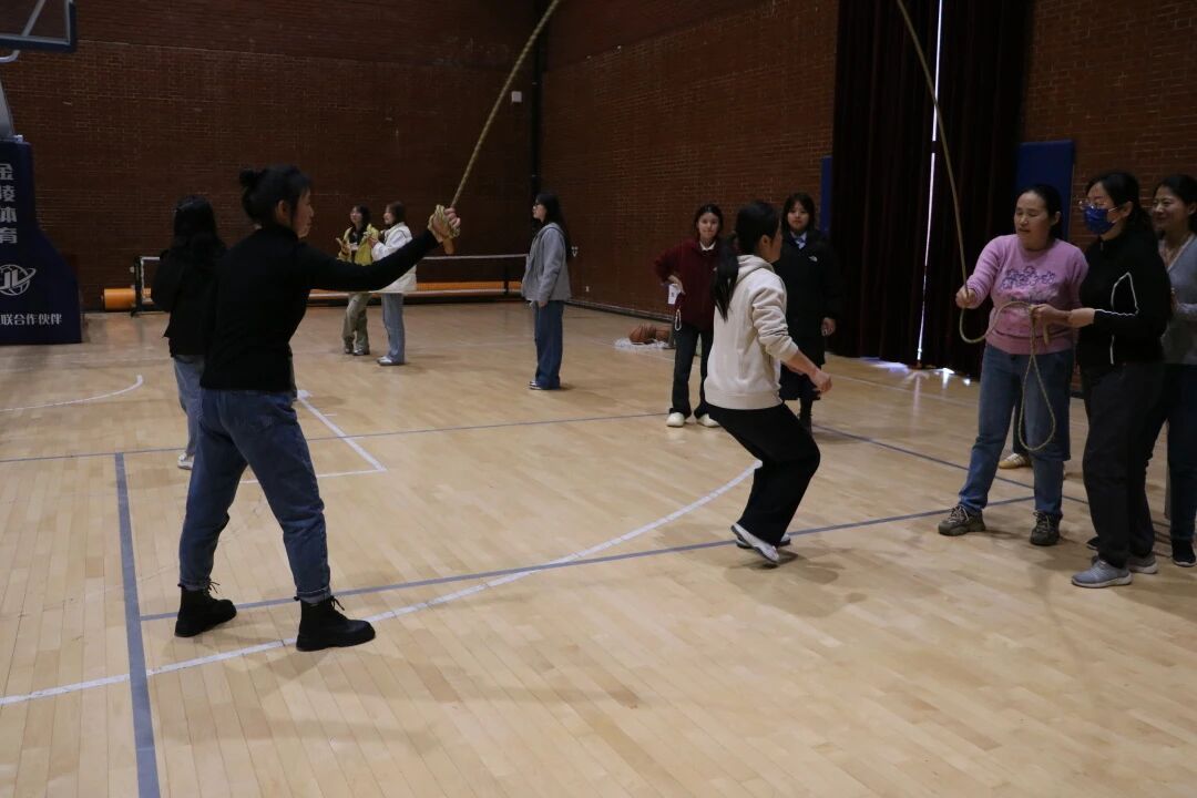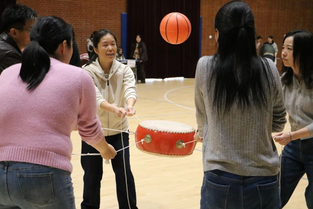 比赛过程中,团体项目的“一圈到底”“同心击鼓”“协同跳绳”成为全场焦点,竞争尤为激烈。各代表队成员心往一处想、劲往一处使,默契配合、携手奋进,每一个动作都凝聚着团队的力量,充分彰显了协作共赢的磅礴气势。个人项目涵盖趣味保龄球、投壶、跳绳、投篮等,教职工们各展所长、各显其能,赛场之上既有技巧的比拼,更有欢乐的分享,现场掌声与欢呼声此起彼伏,热闹非凡。