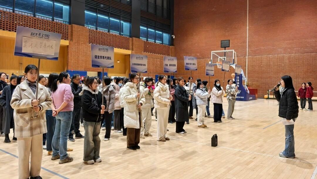 本次运动会设有团体赛与个人赛两大类别,赛事内容兼具趣味性与竞技性。团体赛以系部、教研室为单位组队,共有8支代表队同台竞技,分别是:大学英语教研室代表队、翻译系代表队、国别与跨文化交流系代表队、商务英语系代表队、写作教研室代表队、英语文学系代表队、语言学系代表队以及行政&辅导员联队。