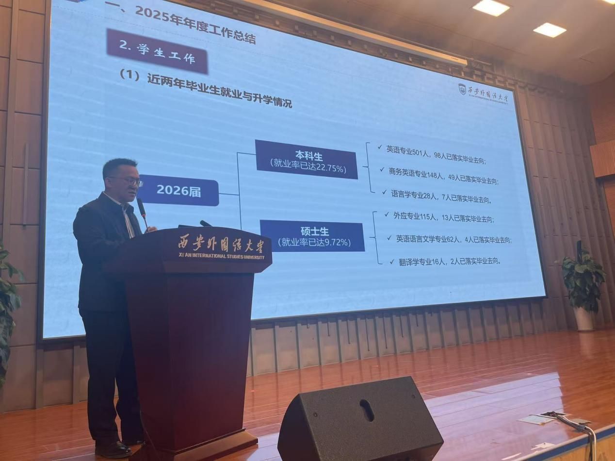 院长冯正斌从夯实党建根基、提升人才培养质量、优化学科专业布局、拓展国际合作视野、优化内部治理与服务效能等6方面全面总结2025年工作,并围绕优化专业结构、提升人才培养质量、加强教师队伍建设三个方面部署2026年重点工作。