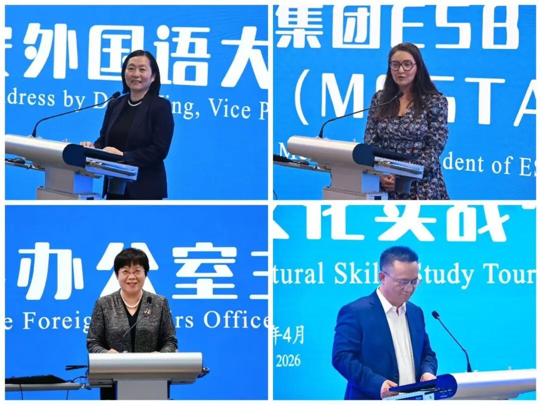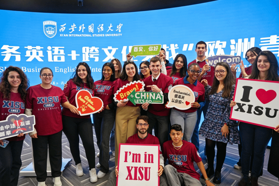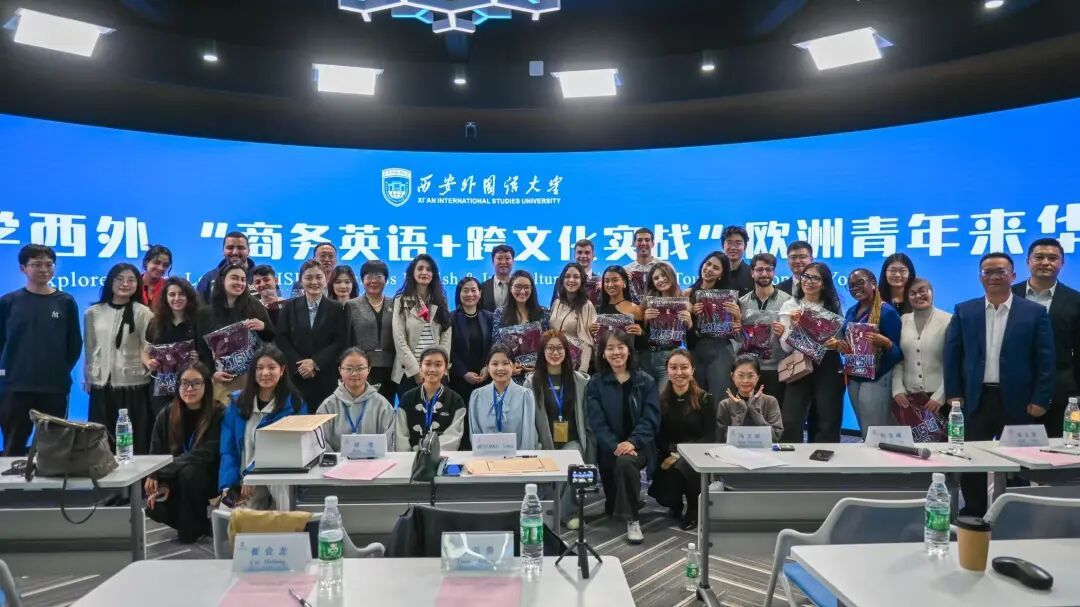2026年4月12日上午,知行中国·乐学西外“商务英语+跨文化实战”欧洲青年来华研学营开营仪式在我校长安校区全景创新教学空间实验室顺利举行。我校副校长邓滢、突尼斯ESPRIT教育集团ESB ESPRIT商学院校长梅斯塔维・伊内丝、山西省运城市外事办公室主任杨云英,国际合作与交流处处处长樊花、副处长刘志峰、中法文化交流中心主任李栋、英文学院副院长宋义国、行政副院长吴笛及北京法中高商教育咨询有限公司总经理崔会龙、长沙抓词智能科技有限公司董事长周有贵参加开营仪式。仪式由英文学院院长冯正斌主持。