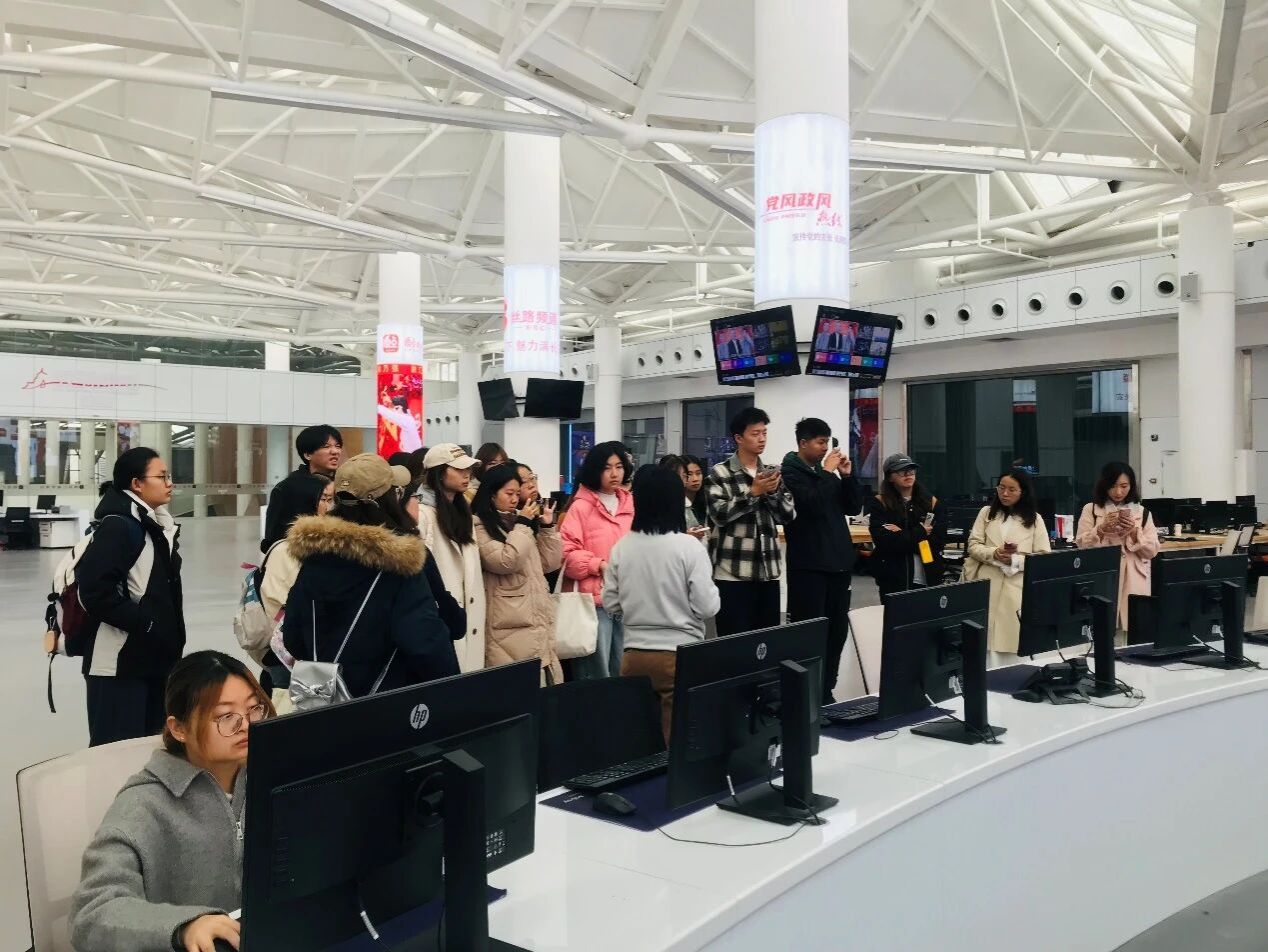 为提升学生专业实践能力,深化校企协同育人机制,助力陕西特色文化走向国际舞台,我院于11 月 10 日组织 2022 级至 2024 级二十余名本科生赴西安市广播电视中心丝路频道开展本科教学实践周研学实践活动。本次活动由英文学院副教授、口笔译实践中心负责人王静老师带队,研究生申笑慈及毕业生校友刘曼舒随同参观学习。