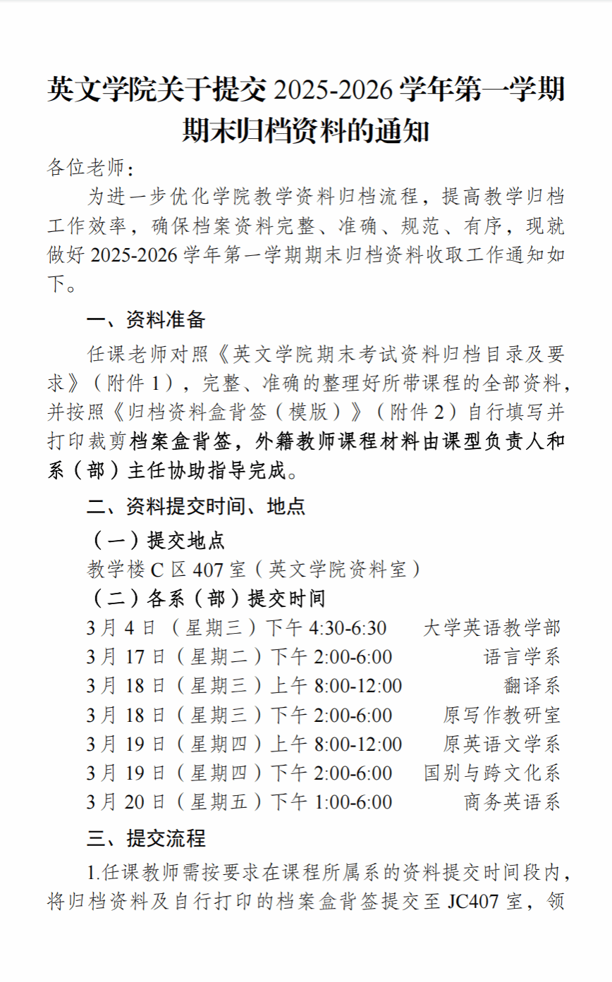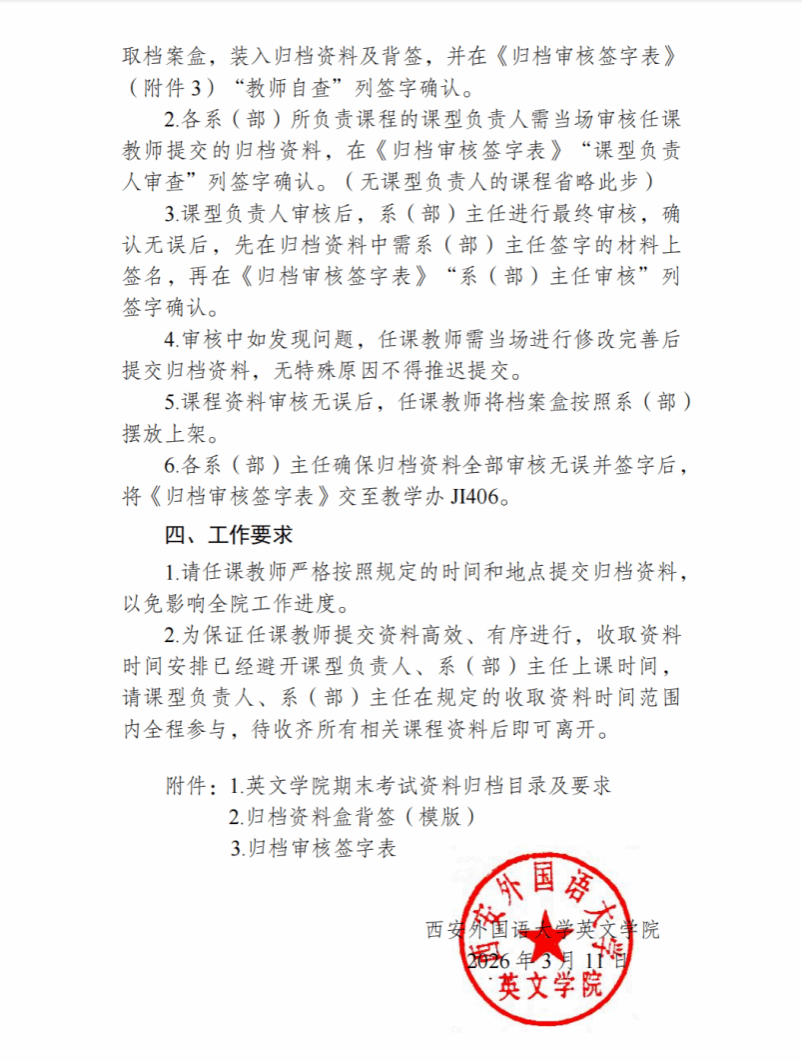 此次期末教学档案归档工作的顺利完成,既是学院教学管理机制不断理顺、工作流程持续优化的体现,也是资料室硬件升级后教学服务保障能力的一次有效检验。下一步,英文学院将以此次归档工作为契机,持续完善教学档案常态化管理机制,充分发挥教学档案在教学研究、质量提升、学科建设中的支撑作用,以规范化的档案管理助力学院教学工作高质量发展。